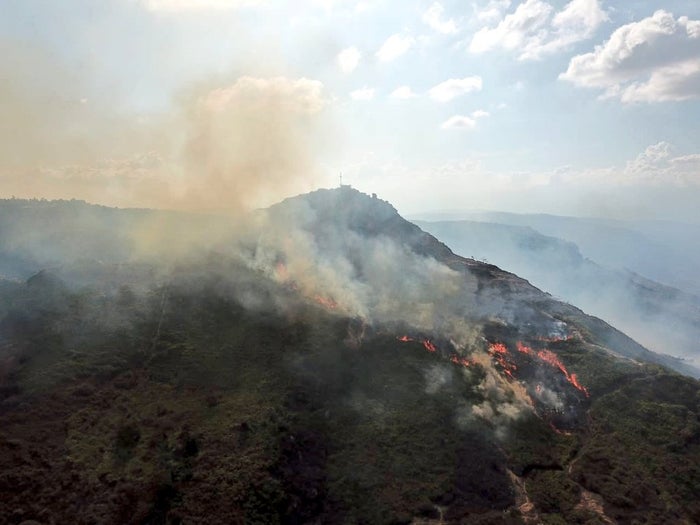 La elevada temperatura que se registra en Santander, sumado a una posible irresponsbailidad de algunas personas, habría originado un incendio forestal que destruyó cerca de 50 hectáres de terreno nativo.