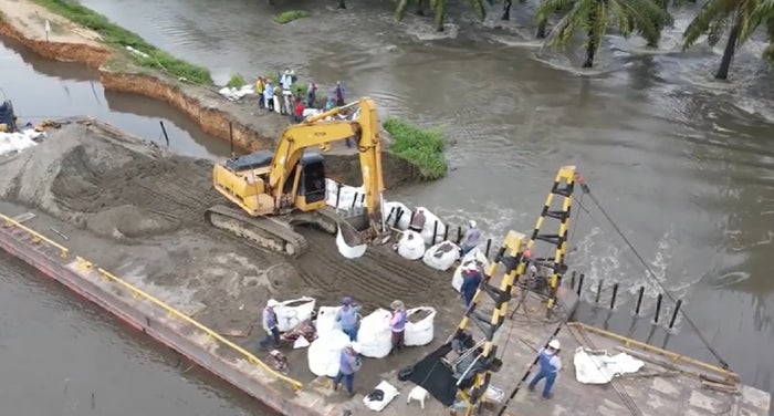 Al tiempo se trabaja con maquinaria en el corregimiento Sitio Nuevo, en donde también se fracturó el muro, el cual ha inundado fincas en otro punto de Puerto Wilches.