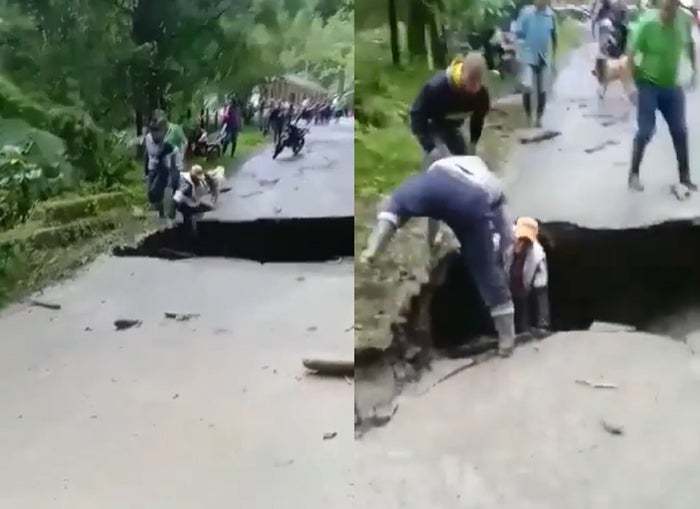 De un momento a otro uno de los campesinos empezó a zapatear al punto que se desprendió un tramo de la carretera y cayó al fondo.