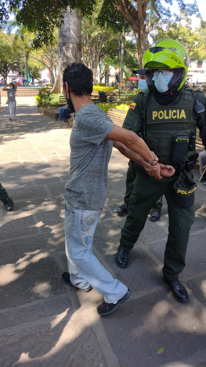 En ese momento algunos periodistas grabaron la situación que se presentaba en el parque del municipio, siendo intimidados por estos personajes, los cuales lanzaron amenazas a los comunicadores. Por ello, fue necesaria la presencia de la Policía Nacional quienes procedieron con la captura de un hombre al cual se le halló en su poder una navaja.