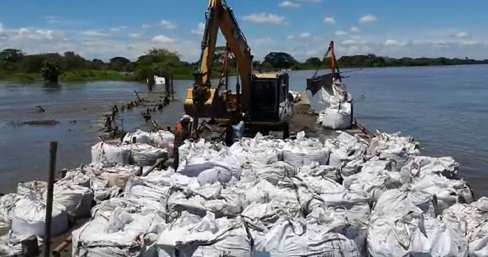Señaló que más de 4 mil familias han resultado damnificadas por el desbordamiento que se registra en varios puntos como Paturia y el corregimiento Sitio Nuevo, en donde se vienen instalando bolsas de concreto, con el fin de taponar los boquetes que el río ha abierto.