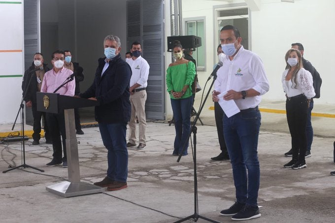 La entrega de los espacios, dedicados a la atención de pacientes con la Covid-19, la hizo el presidente Iván Duque, quien arribó a la localidad santandereana en compañía del ministro de salud, Fernando Ruíz.