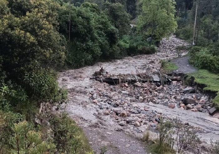 El director de Gestión del Riesgo, Fabián Vargas, explicó que desde la parte alta del páramo del Almorzadero se registró una fuerte lluvia que represó algunas quebradas originando así una creciente súbita.