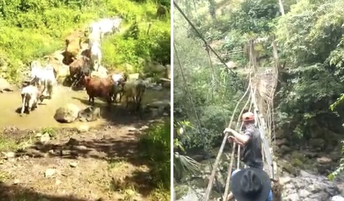 Esta infraestructura fue construida en 2008 sobre un caudaloso río y un abismo de más de 100 metros. Sin embargo por la inestabilidad de este, y el clima, hace dos meses se cayó por tercera vez. Afectando a tres escuelas, ganaderos y campesinos productores de plátano, yuca y cacao.