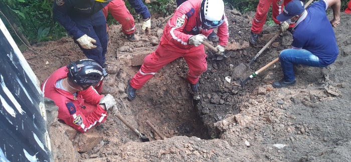 “Llegamos 25 unidades, tres camionetas y una ambulancia, pero eran dos metros de profundidad y desafortunadamente el terreno es muy fangoso, esto quiere decir que la tierra se compacta y de allí surge la dificultad para poder sacar el cuerpo”, manifestó el Capitán Alexánder Díaz, comandante Cuerpo de Bomberos de Barrancabermeja.