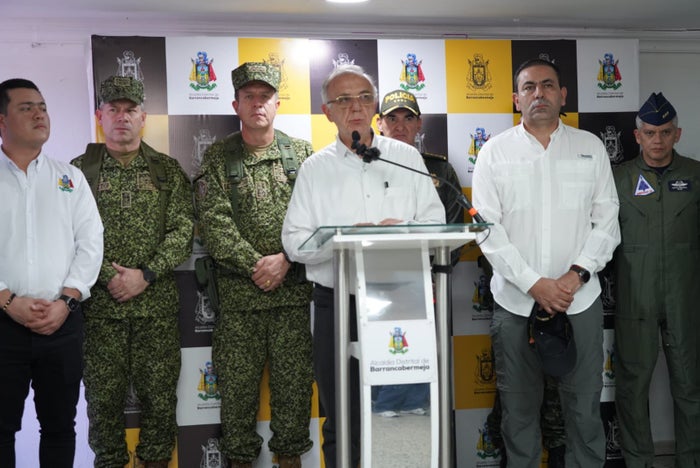 Funcionarios como el ministro de Defensa, Iván Velásquez, la fiscal general de la Nación, Luz Adriana Camargo y la cúpula del Ejército y la Policía nacional participaron en un Consejo de Seguridad, en las ciudades de Barrancabermeja y Bucaramanga, ante el aumento de hechos violentos en el país.