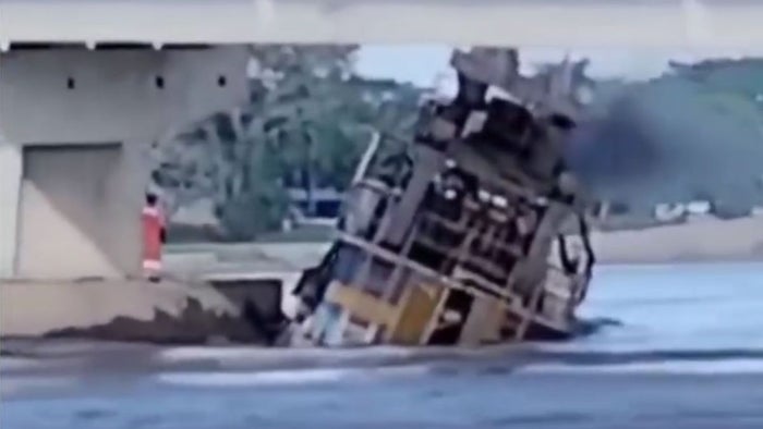 Imágenes captadas por testigos evidencian el momento en que el remolcador comienza a inclinarse peligrosamente tras la colisión, hasta quedar completamente sumergido en cuestión de segundos. En el video también se observa cómo los tripulantes saltan hacia una de las columnas del puente para evitar ser arrastrados por la corriente.
