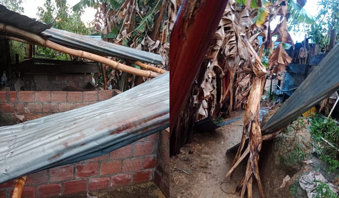 Además de los daños en los cultivos, varias viviendas fueron severamente afectadas. Una mujer agricultora indicó: "Nuestra casa quedó sin techo, la cocina está completamente destruida. El secadero de café fue arrancado de su marco por los vientos y cayó encima de la casa. Todo quedó destruido".