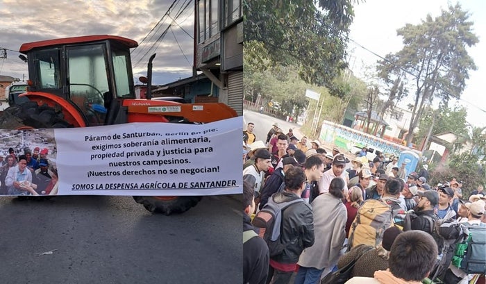 Gremio de campesinos de Santander entró en paro indefinido como protesta contra el Gobierno Nacional. El paro es liderado por la Asociación de Campesinos Defensa Páramo de Berlín y se reporta que hay bloqueos viales en cuatro zonas del departamento: Rionegro, Curos, Berlín y Picacho.