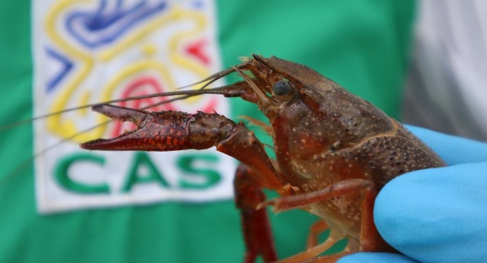 En una laguna de municipio de Villanueva en Santander, autoridades ambientales hallaron a un ejemplar de un cangrejo o langostino rojo.