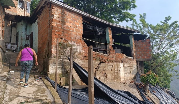 "Anoche se sacaron todas las familias que estaban en el segundo piso y las que estaban en el kiosco, tuvimos que reubicarlas en la cancha de baloncesto porque hay grietas que se están dilatando por lo que se perjudicaron las cuatro casas que están en la parte de arriba", indicó Isabel Román, presidenta de la Junta de Acción Comunal del barrio La Feria.