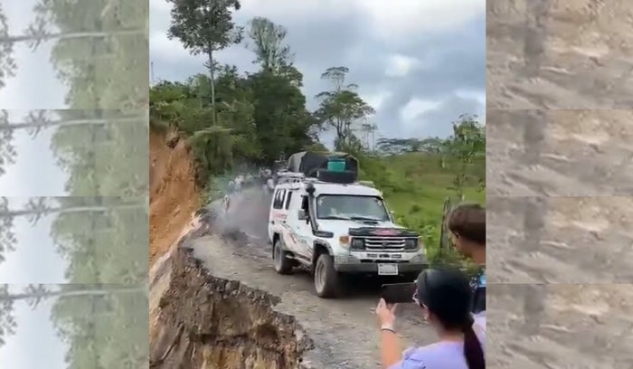 Sin embargo, Morales decidió continuar la marcha y con el vehículo ladeado sobre un costado de la vía atravesó la zona afectada.
