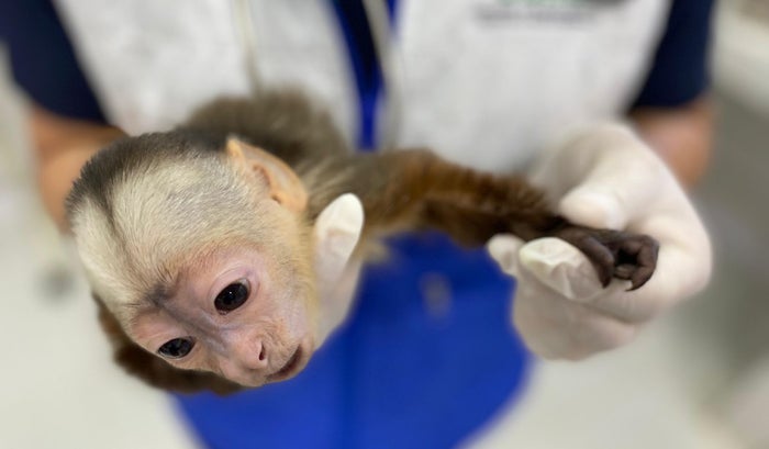 Los animales, extraídos ilegalmente de su hábitat natural y mantenidos en cautiverio, fueron encontrados en delicadas condiciones de salud, siendo el caso del primate especialmente crítico.