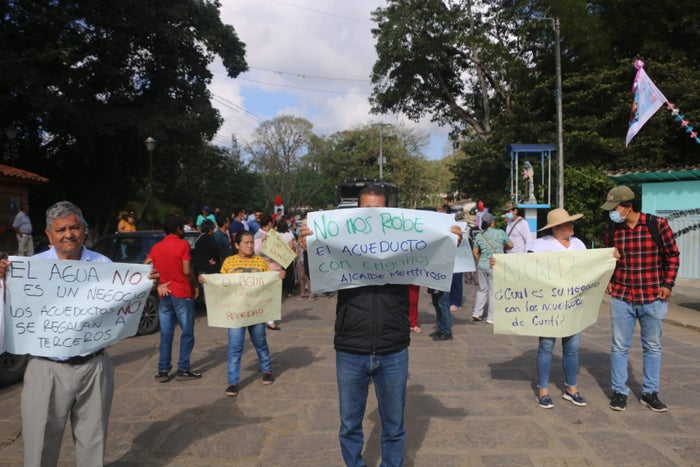 “Hoy las comunidades de las veredas reclamamos por la presunta expropiación de este bien comunitario para hacer parte de los bienes activos del municipio. Sin dar compensación o indemnización por el trabajo que se lleva invirtiendo en este acueducto. No sabemos que hay más allá de eso, pero si es de manera sistemática”, indicó Julián Tangua, de la Organización Casa Aguaya y del Congreso Ambiental de Santander.