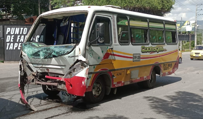 Un furgón y buseta de servicio público chocan en la vía Girón- Bucaramanga