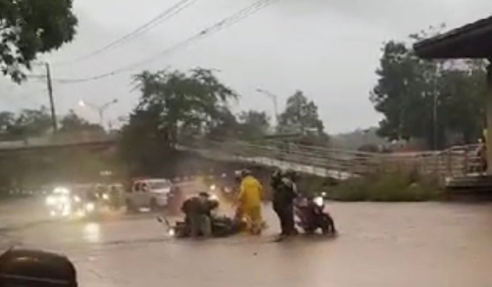Recientemente se registró en el sector de La Españolita, en Piedecuesta, el desbordamiento de una quebrada que provocó un monumental trancón tras la caída de dos motociclistas. En este sector ya se encuentran las autoridades, quienes pidieron precaución al transitar en esta jornada de lluvia.