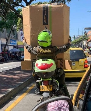 Luego que se volviera viral el video en donde se observa que unos policías transportan en su motocicleta de servicio una gran caja por la carrera 15 en Bucaramanga, la Dirección de Tránsito municipal les impuso un comparendo por cometer una infracción tipo C27.