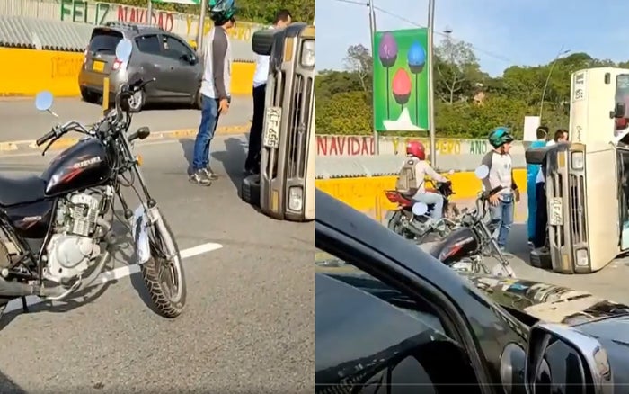 En la mañana de este jueves, 9 de diciembre, se registró un accidente de tránsito en el Viaducto García Cadena de Bucaramanga, en sentido sur-norte. Al parecer una camioneta, la cual llevaba dos pasajeros, se volcó. Por ahora se desconocen las causas del accidente.