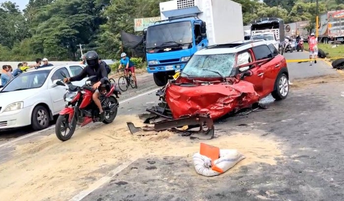 El conductor de un vehículo Mini Cooper con placa UDU 846 perdió el control, hasta el punto de saltar el separador, colisionando contra un tractocamión. El automóvil quedó en el sentido en el que iba inicialmente, totalmente destruido.