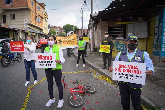La campaña la dirigieron con frases como, "¿Por qué arriesgas tu vida, si te hacen falta años por recorrer?", "Por sentir adrenalina no arriesgues tu vida", "Gravity Bike una práctica mortal" y "Mamá ¿sabes dónde está tu hijo?".