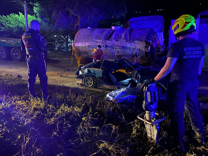 El teniente Édgar Ochoa, comandante de Bomberos de Bucaramanga, señaló que “ se encontraba una mula que llevaba un contenedor, pero al dar la curva donde se encuentra el intercambiador donde está la Y del Café Madrid, se suelta el contenedor y cae encima de un vehículo, dentro del vehículo había una persona atrapada la cual fallece en el lugar”.