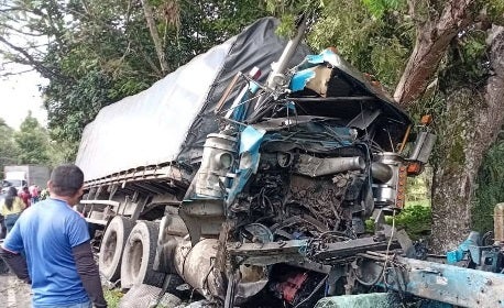 Un grave accidente se registró en horas de la mañana en la vía que comunica de Socorro a Oiba que ocasiona congestión vehicular consecuencia de un choque entre varios tractocamiones.