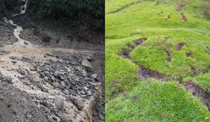 “La vía principal se ha visto afectada por pérdida banca, material de arrastre de las quebradas sobre los tramos viales y derrumbes sobre las mismas vías”, expresó Daniel Moreno López, asesor externo de planeación y coordinador municipal de Gestión del Riesgo.